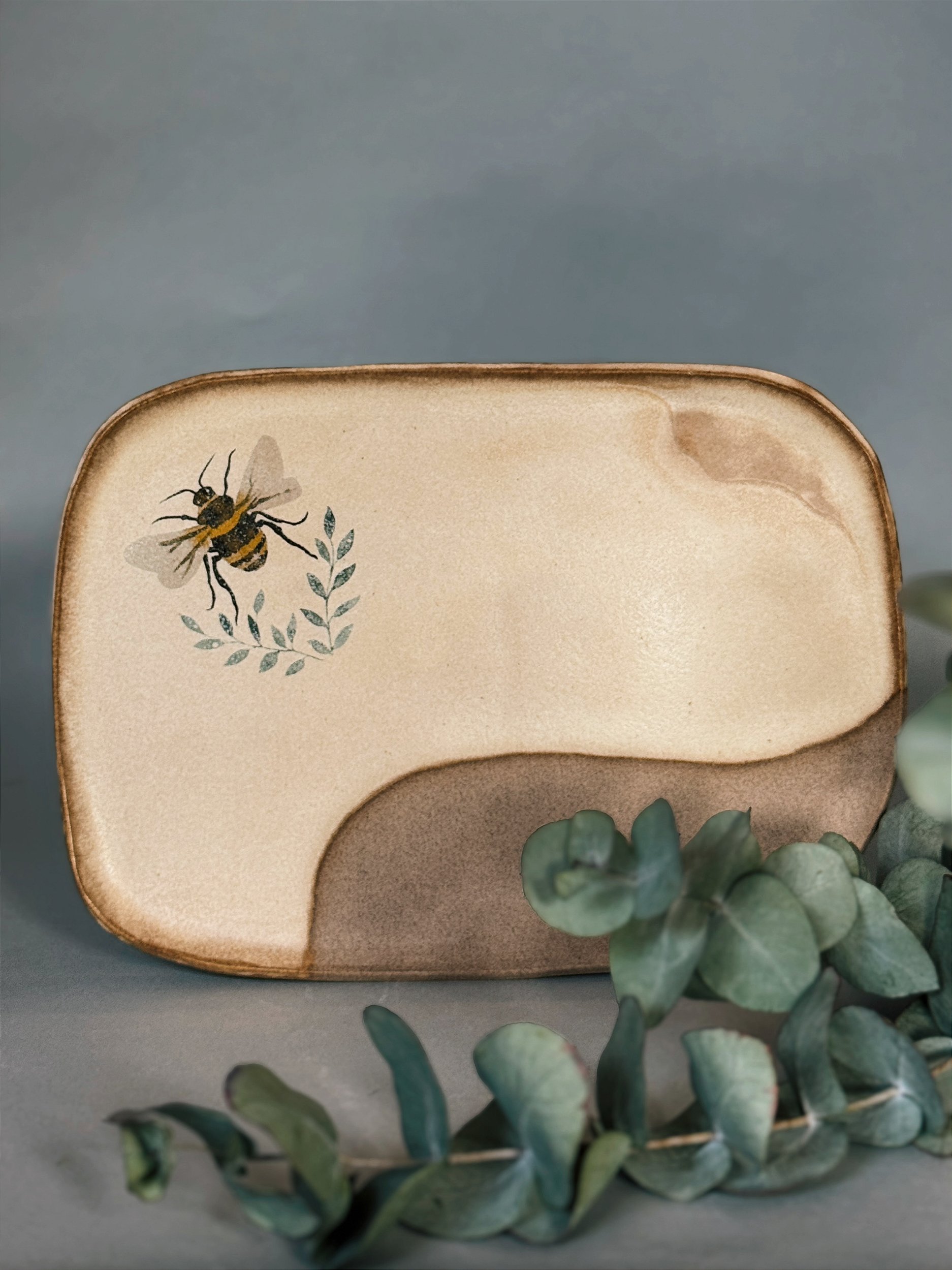 Peça feita em cerâmica e estampada com a logo Apis aquarela. Trata-se de uma peça cheia de delicadeza que foi desenvolvida especialmente para comemoração de 8 anos do ateliê . A pintura leve no estilo aquarela confere á peça uma beleza suave. As abelhas entre flores no jardim representam um convite para viver o que importa. para agradecer a presença e para celebrar tudo o que fica.